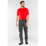 Pantalone uomo con inserti e cuciture in colore nero a contrasto, impunture in colore rosso
