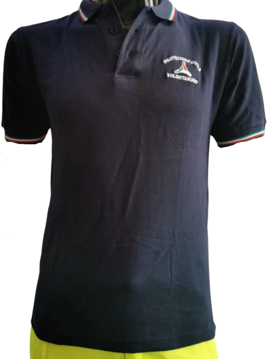 Maglietta polo manica corta bordi manica e collo tricolore logo con ricamo protezione civile volontariato, 100%CO